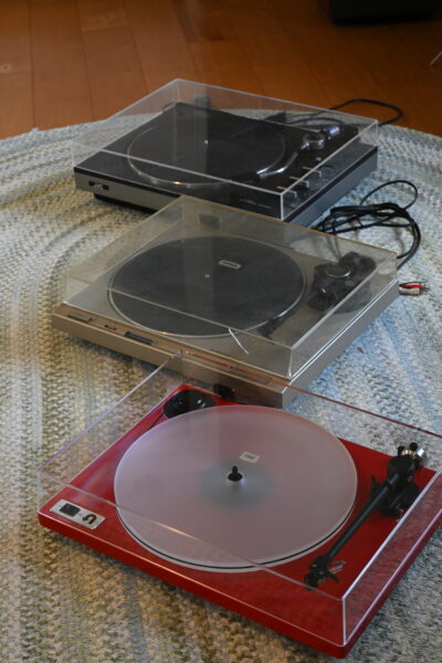 The 1981 was Fred’s, which he gave me when he got rid of his vinyl. It’s a direct-drive Pioneer with a very nice Audio-Technica cartridge, which I will hold onto. It has developed random fluctuations in its speed control and sounds like crap. I suspect bad caps for it, too.