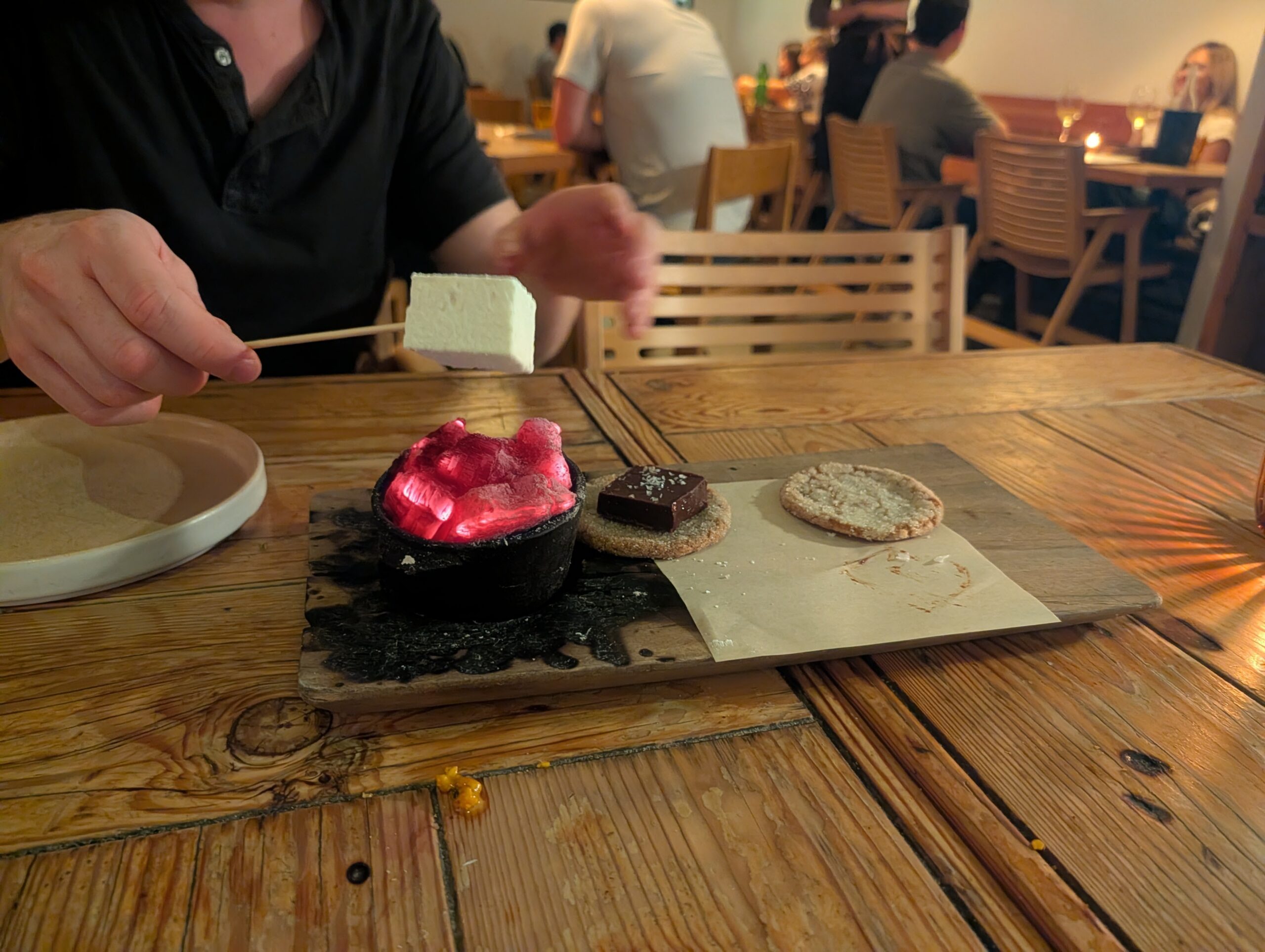 Campfire I went out with colleagues to a great restaurant in Carlsbad, CA and for dessert you can make your own s’more.