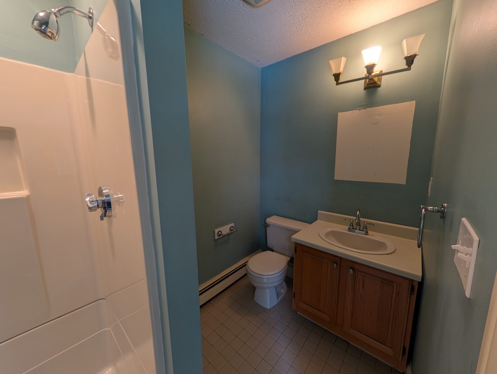 So long So long, dated primary-suite bathroom with a tiny, tiny shower. We look forward to meeting your posh new replacement in about 2 months.