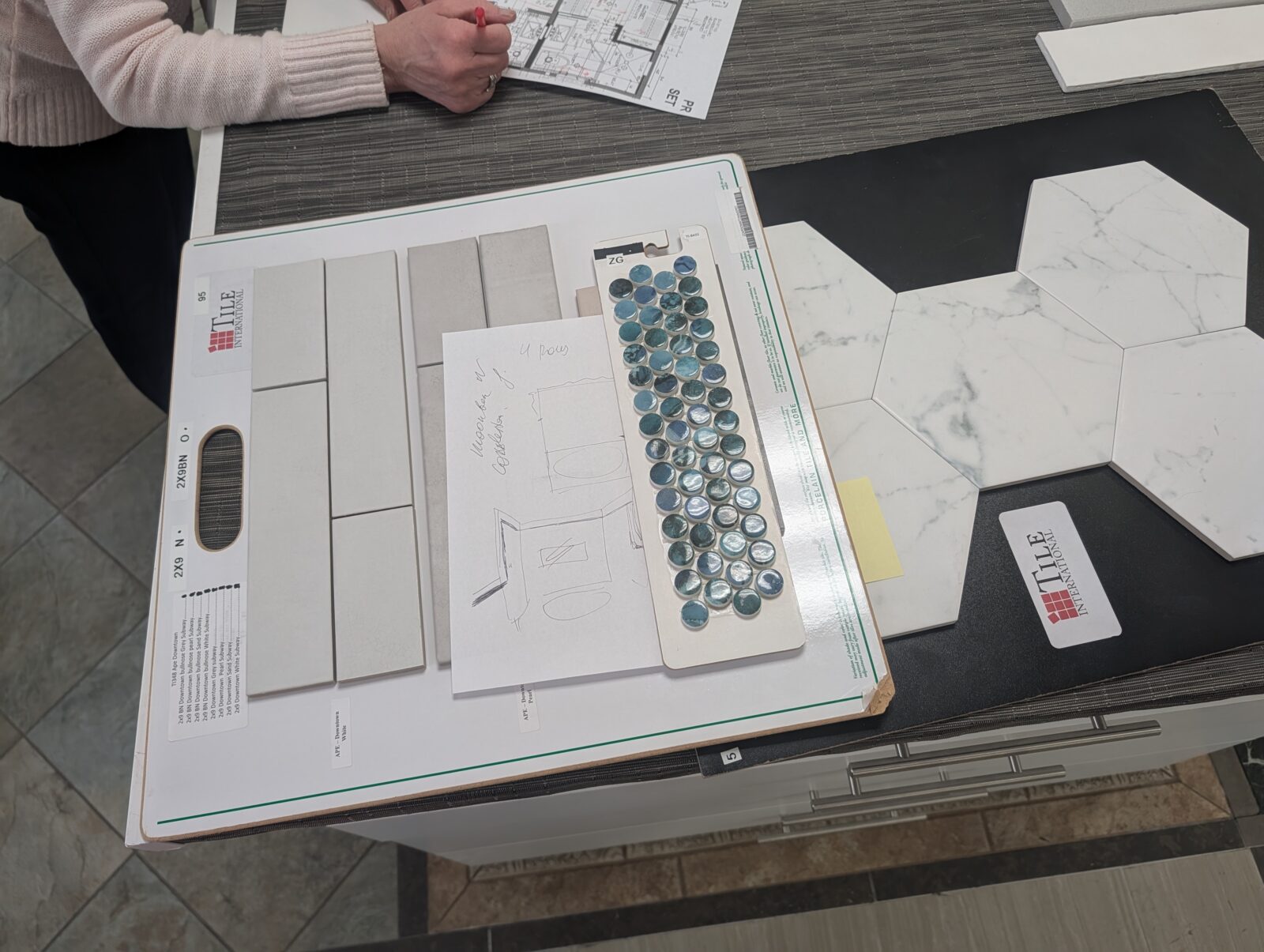 Some of our tile choices for the two bathrooms.