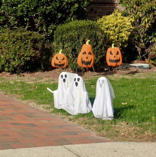 keeping it simple I appreciated the simplicity of this choice of decorations. A few pumpkins, some ghosts, and there you are. I like it.