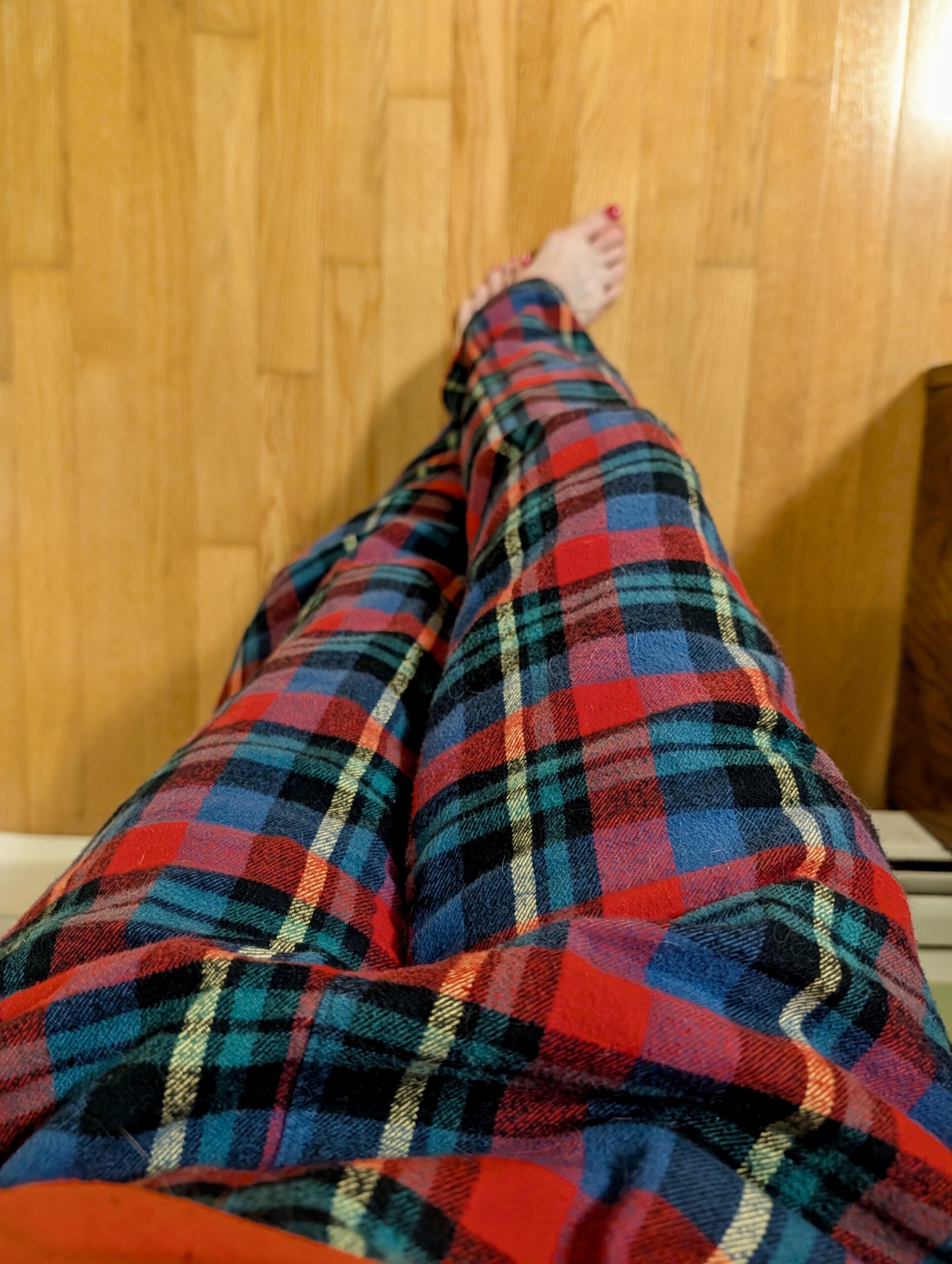 I love my plaid fleece lounge pants. They’re warm and comfy and even have pockets.