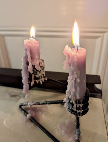 drippings After Thanksgiving dinner, I walked around the room and blew out all the candles, and was struck by the way these two melted and dripped.