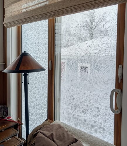 blizzard I’m told there’s a lot of snow falling, but I can’t really see out the window to confirm. I’m also assuming our neighbors’ homes are still there.