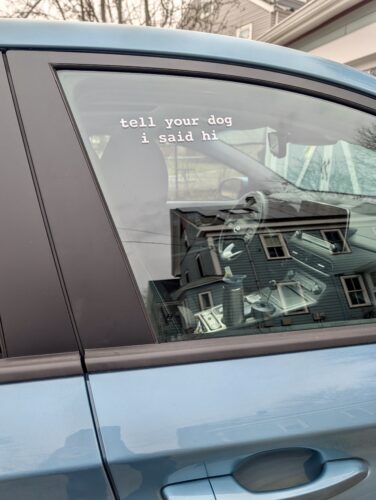 friendly message This Bunny likes dogs just fine. (in case you’ve forgotten, my car’s name is Bunny.)