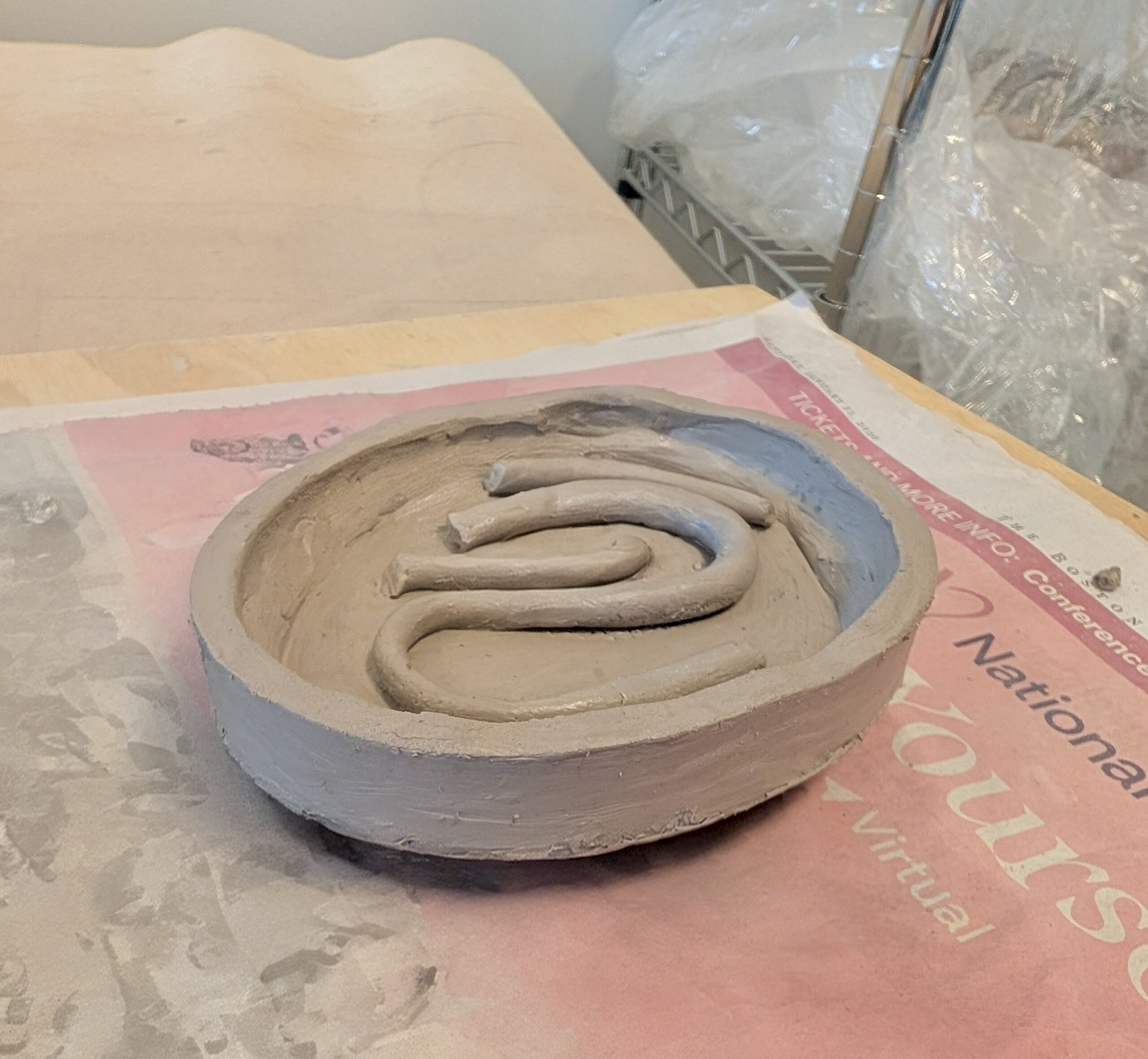 soapdish #2 Since we are renovating both bathrooms, they both need a new soap dish. Here’s my effort from today. I will probably glaze it in a couple weeks.