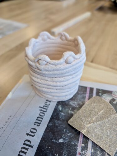 For toothpaste and manual toothbrushes.  Sanded it today, hoping to glaze and fire next time. I am embracing the wonk.