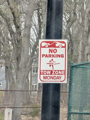 on your mark These signs are posted all over the Marathon route, and and all the streets that connect to it. I have to plan my errands on Marathon Mondays because of this.